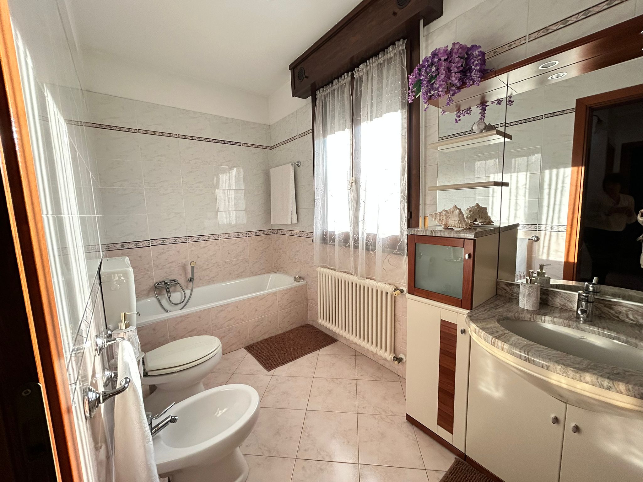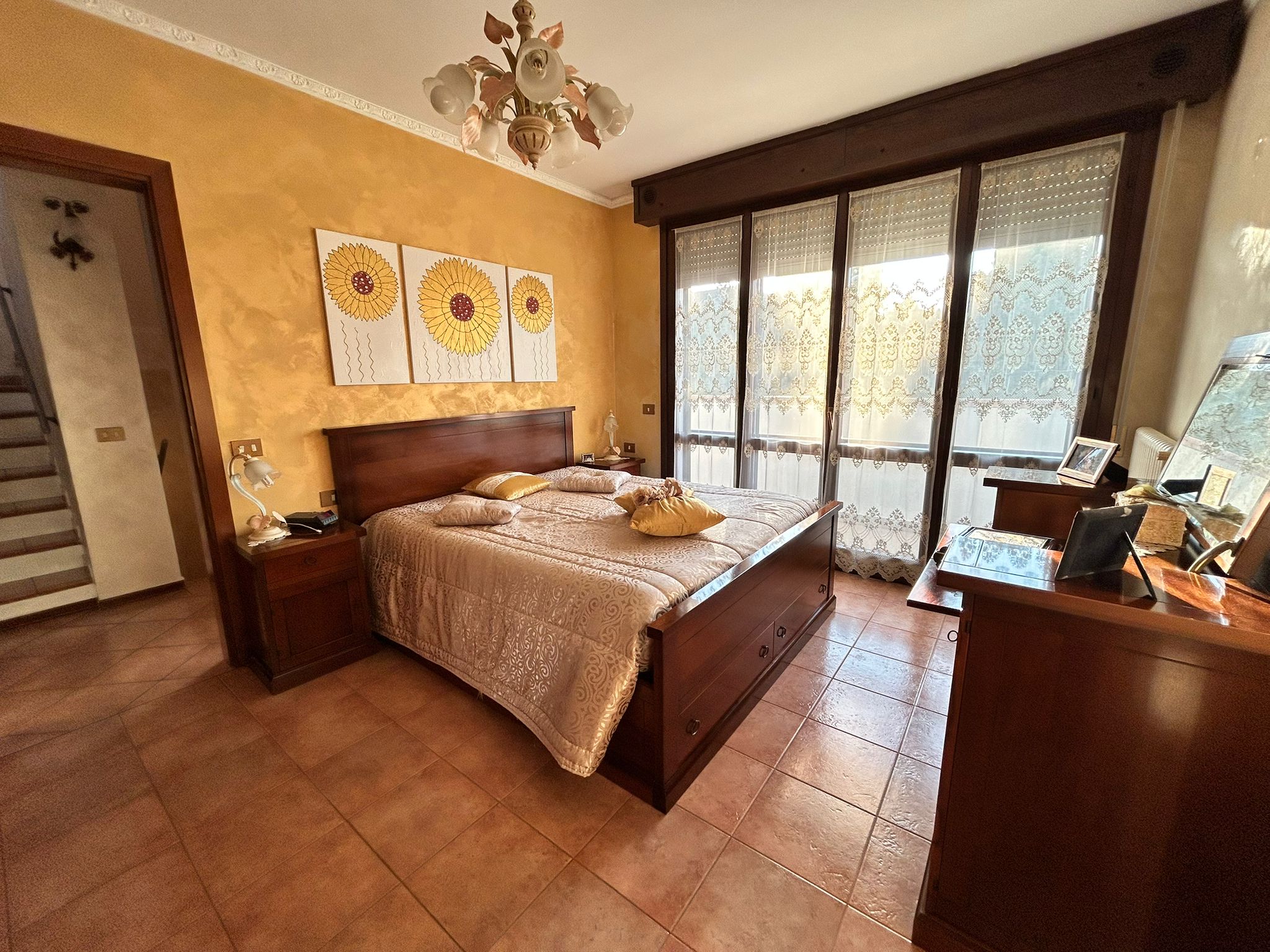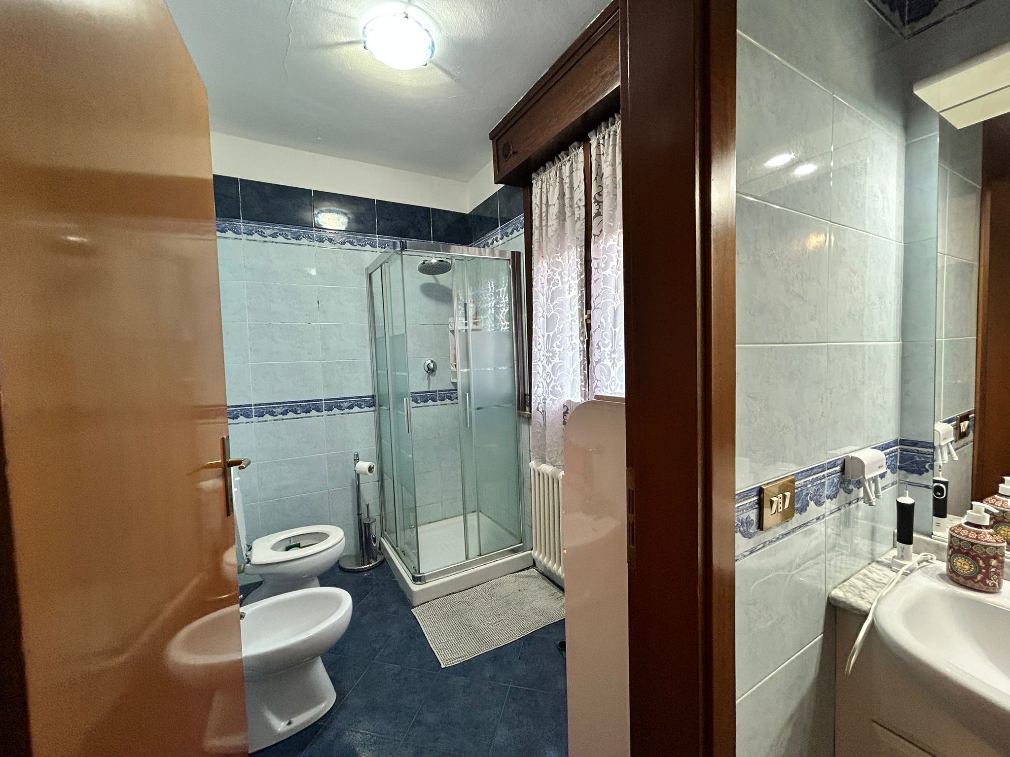 Al primo piano abbiamo una camera da letto matrimoniale con comoda portafinestra per accedere al secondo terrazzo, due camerette e il bagno completo di doccia e finestrato.