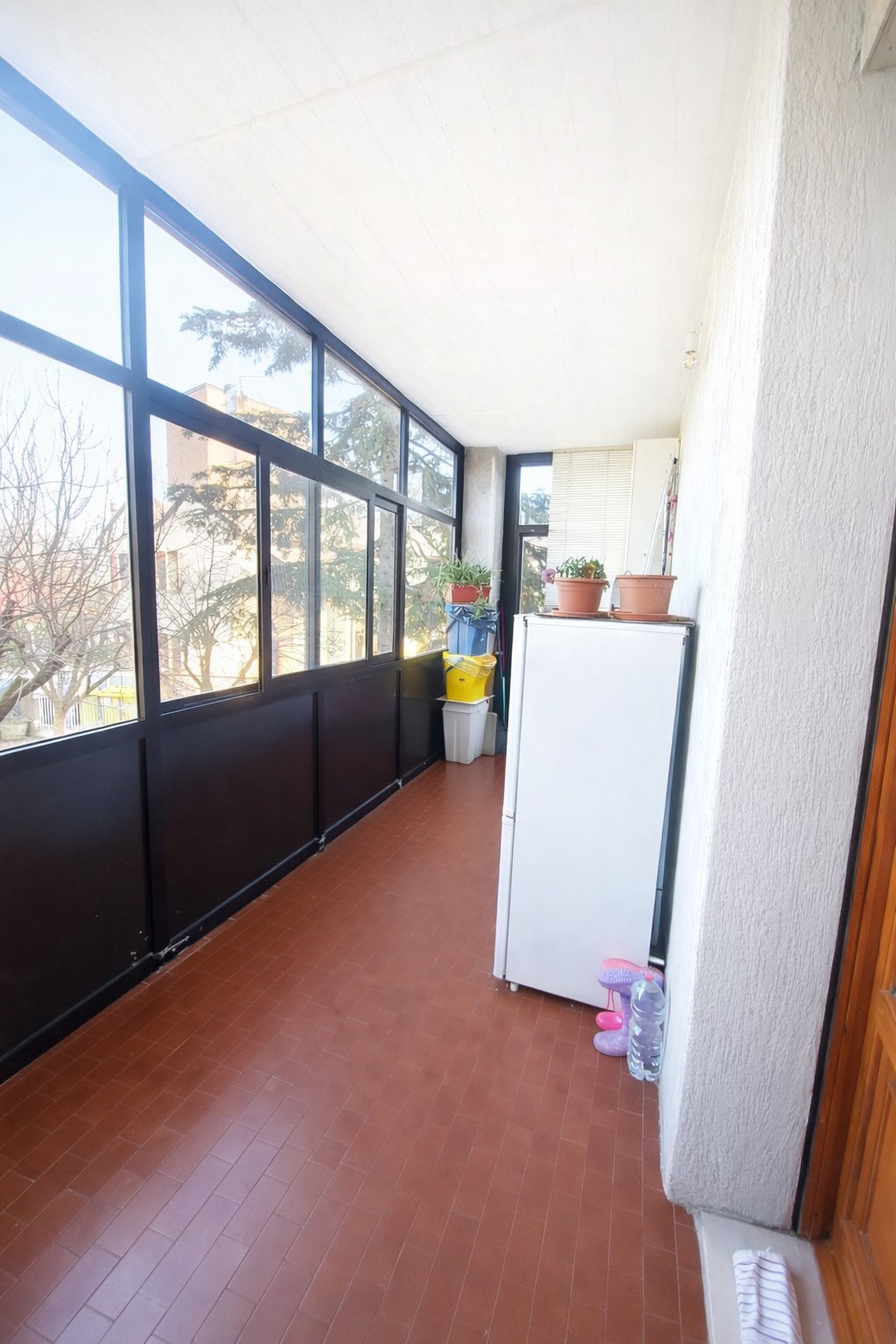 Veranda accogliente, accessibile dal soggiorno e da una camera matrimoniale tramite comoda portafinestra, perfetta per godersi i primi raggi di sole nelle giornate primaverili ed estive