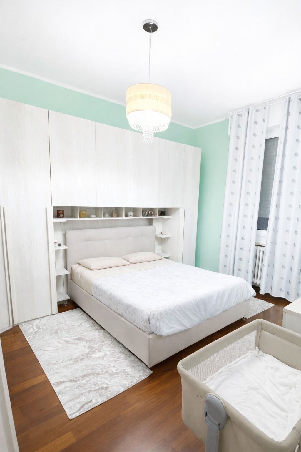 La zona notte, ben separata, ospita due camere da letto di generose dimensioni, facilmente arredabili e adatte sia a una famiglia sia a chi desidera uno studio o una stanza per gli ospiti.