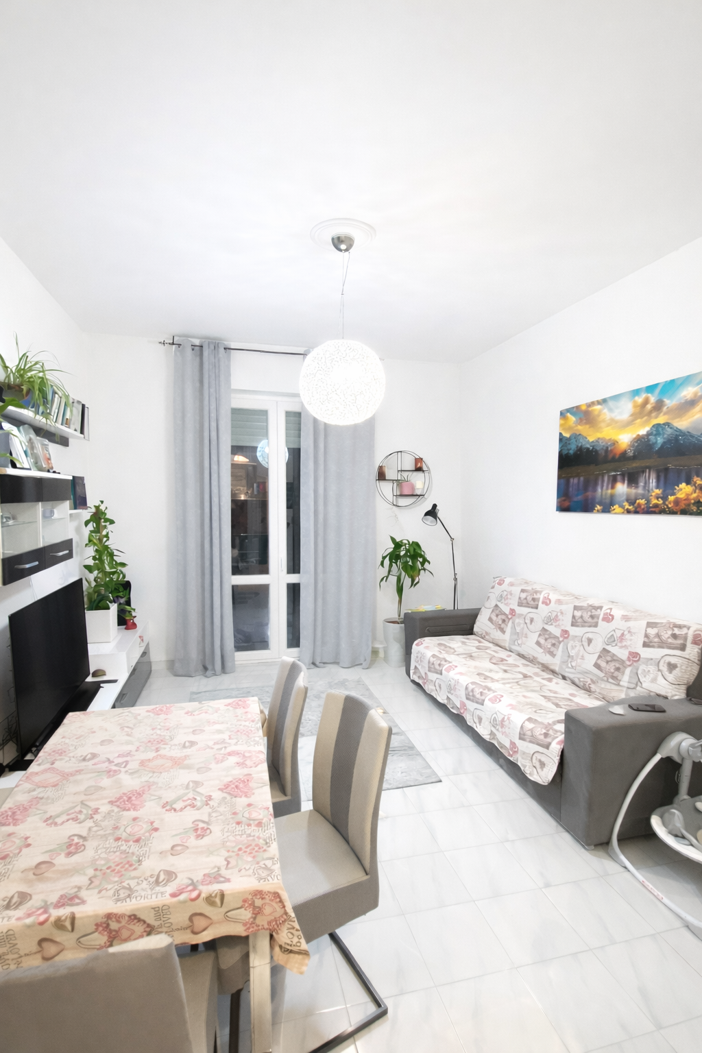 L’ingresso accompagna alla zona giorno, composta da un soggiorno ampio e luminoso, valorizzato dall’accesso diretto al primo balcone, perfetto per momenti di relax o per godere della luce naturale durante tutto l’arco della giornata.