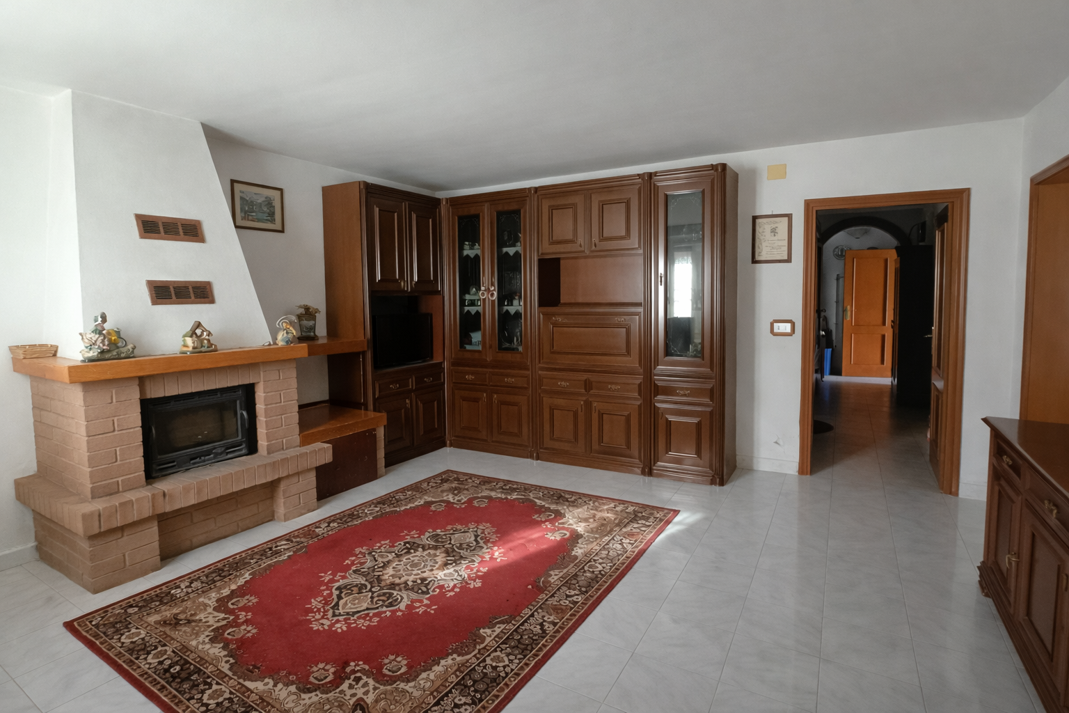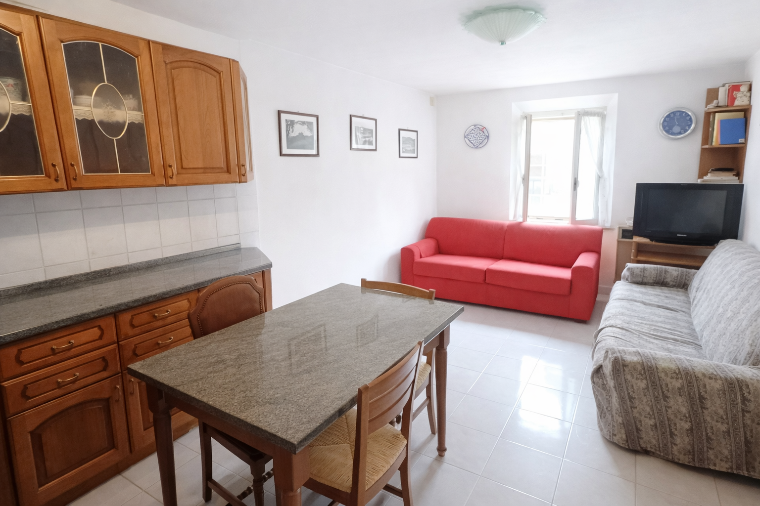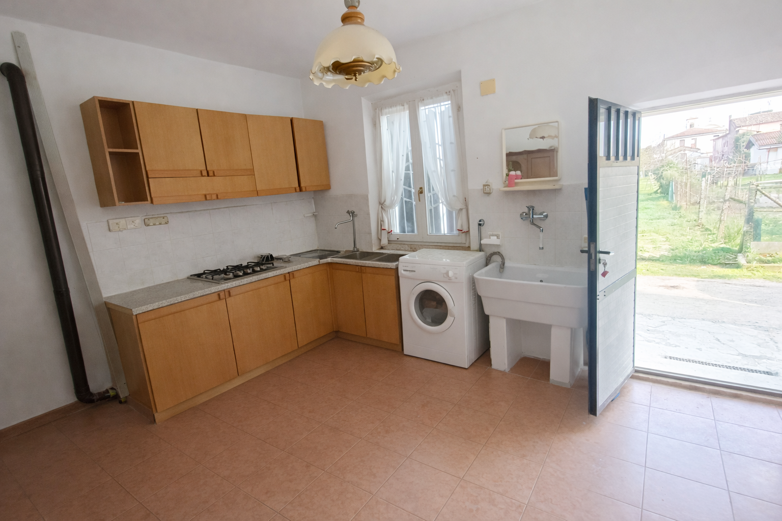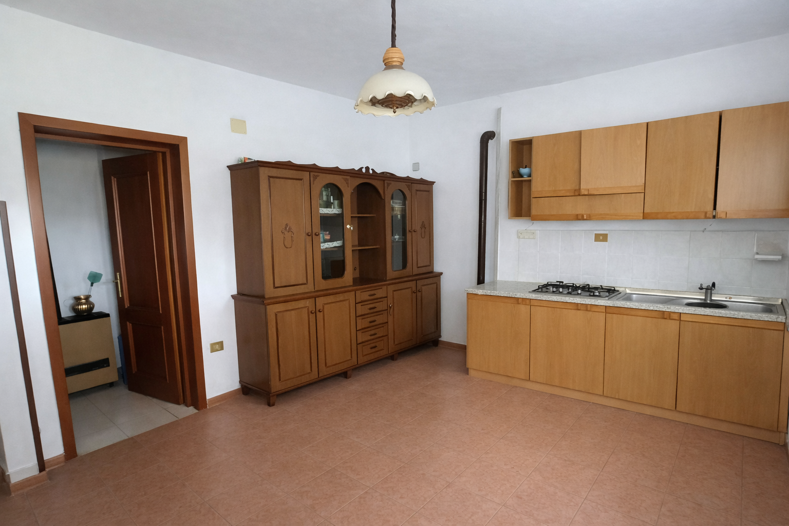 L’ingresso principale apre su un ampio soggiorno, adiacente una cucina abitabile perfetta per i pranzi in famiglia. Il piano è servito da un primo bagno funzionale.